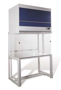Unimodule M-2 Vertical Laminar Flow Workstation^ Includes HEPA filter, solid-state speed control with RFI suppression, clear view screen, isolated table with laminated stainless steel work surface, fluorescent lighting. 900cfm at 90fpm. 1/3hp motor. 115V, 8.9A. 132.8Wx85.1Dx247.7Hcm. ETL.