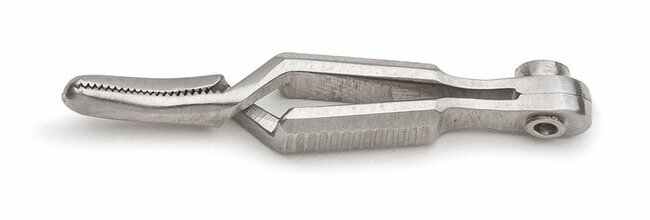 Micro Bulldog Clamp, 16cm, Serrated, Curved Jaw, German, Each