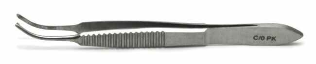Graefe Forceps, 7cm long, 1 x 2 teeth, 0.7 mm curved tip