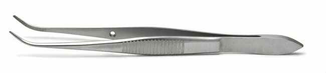 Iris Forceps, 10cm, Curved, Serrated, German, Each