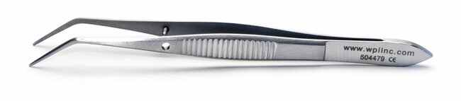 Microdissecting Forceps, 10.2 cm, Angled, Serrated, Each