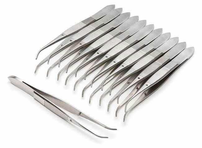 Iris Forceps, 10cm, Curved, Serrated, 12-pack, Pack of 12