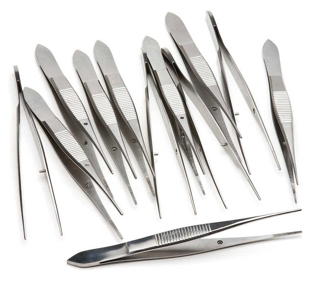 Iris Forceps, 10cm, Straight, Serrated, 12-pack, Pack of 12