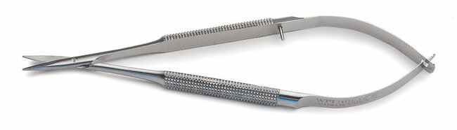 Spring scissors, 14cm, round handle, 6.5mm blade, straight (German-made)