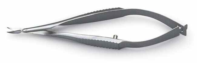 Vannas Scissors, 8cm, curved, 5mm blade, 0.1 mm tip (German-made)