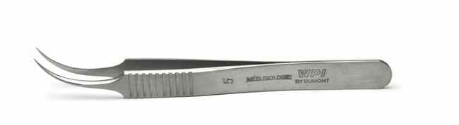 Tweezer, Dumont no.5, Stainless steel, Medical Biology, 11cm, 0.02 x 0.06 mm half curved tips