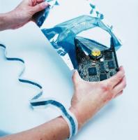 Disposable Wrist Strap^ Ideal for visitors. Has hypoallergenic adhesive and provides 360[degrees] of skin contact. Current limiting resistance is fabricated into plastic ribbon below the wrist strap. At the other end conductive adhesive on copper foil adheres to any convenient ground.