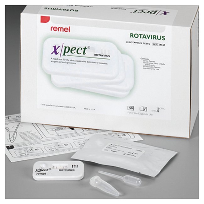 Optimize your workflow by rapidly detecting rotavirus antigen in human fecal specimens using Thermo Scientific™ Xpect Rotavirus Test. Combine excellent clinical performance with a simple, two-step procedure that offers accurate results within 15 minutes.Use this rapid, lateral flow immunoassay for the direct qualitative detection of Rotavirus antigen. Enhance laboratory performance and efficiency with excellent clinical sensitivity and specificity and a simple walk-away procedure. Clearly visible, easy-to-read results in just 15 minutesLess than one minute hands-on time100% sensitivity and specificityStock up with 18-month shelf life at room-temperature storageXpect Rotavirus uses antibody-coated color particles to bind with target antigen in the diluted sample. The color-antibody/antigen complex moves along the test membrane. Immobilised antibodies specific to target antigen capture the color-labelled antigen complex at the test region, causing a clearly visible line to appear. This line will not appear in the absence of specific antigen. Immobilised, non-specific antibodies in the control region capture the color-labelled antibodies, whether antigen is present or not, resulting in a clearly visible control line. Trust the entire family of Xpect rapid tests to deliver unparalleled diagnostic performance while offering ease-of-use, convenience and time savings. Each test is an immunochromatographic assay with a simple procedure that provides rapid, cost-effective detection to aid in the diagnosis of infections. Xpect Flu A&B Xpect RSV Xpect C. difficile Toxin A/B Xpect Rotavirus Xpect Giardia Xpect Cryptosporidium Xpect Giardia/Cryptosporidium Xpect Legionella Not all products are available for sale in all territories. Please inquire. Remel™ and Oxoid™ products are now part of the Thermo Scientific brand, combining powerful manual, semi-automated and fully automated test products and a comprehensive line of media and diagnostic products to offer a complete, end-to-end solution to quickly deliver the products you need and the quality results your laboratory depends on.
