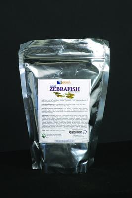 Nutritionally Complete, Irradiated Diet for Adult Zebrafish Reared in Laboratory Tanks^ 55% Protein, 15% Fat, 2% Fiber; 0.60-0.84 sinking crumble; 24 x 16oz pouches per case.