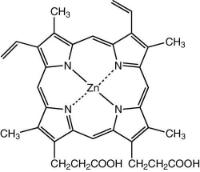 Zinc protoporphyrin^97%.Crystalline,WARNING: Causes,irritation, headache, metal fume fever,10mg,50mg.